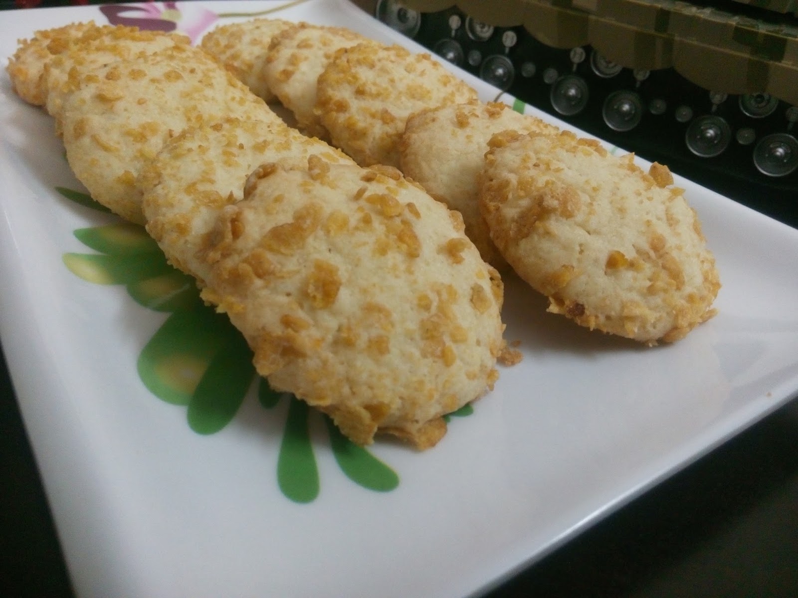 - In a small plate crush cornflakes into smaller bits. We use sugar coated cornflakes in our cookies and we feel they add an extra taste along with the crunch